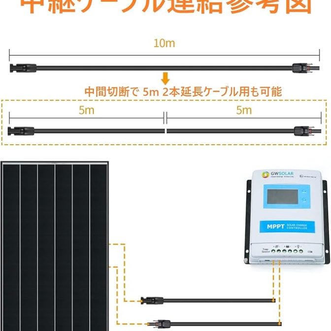 ソーラーパネル中継ケーブル 10m 両端MC4コネクタ付き 4SQ H-CV600用 型番:GW-PJ-0710-080