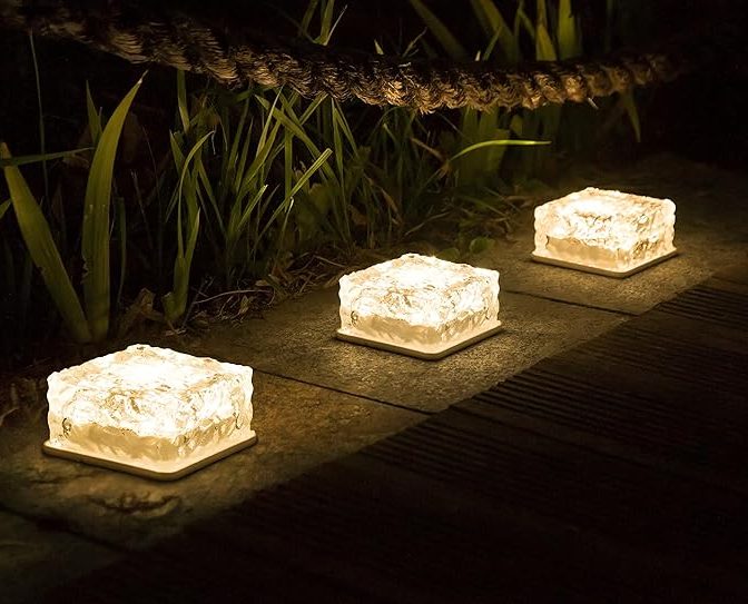 • ★【特長1】自社製「ブリックアイス模様のソーラーライト」幻のような光模様クリスタルガラス・ 埋め込み式ガーデンライト4個セット、電球色 華やかなガラス光!