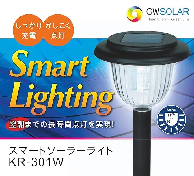 GWSOLARソーラーライト!! ホワイト色3本組 明るさ30ルーメン【Smart Lighting】夜間自動点灯、高さ57㎝【型番:KR-301W(3pcs)】