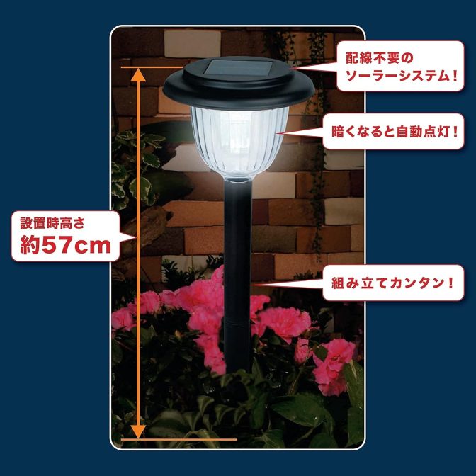 - ★【商品内容】ガーデンライト3個組(リチウムイオン充電池内蔵)、付属品:差し込みアンカー、 取扱い説明書(保証書付き)。