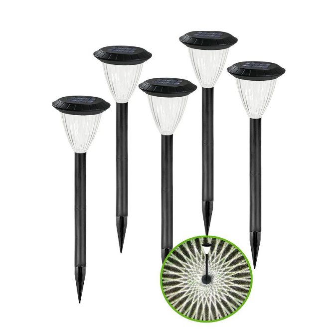 - ★ソーラーガーデンライト5個組、ホワイト色LED、明るさ 50 ルーメン、拡散型の光模様、お庭やガーデン、アウトドアのパーティー会場などの美しい灯りアイテム。