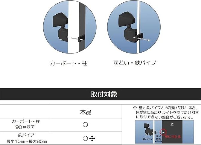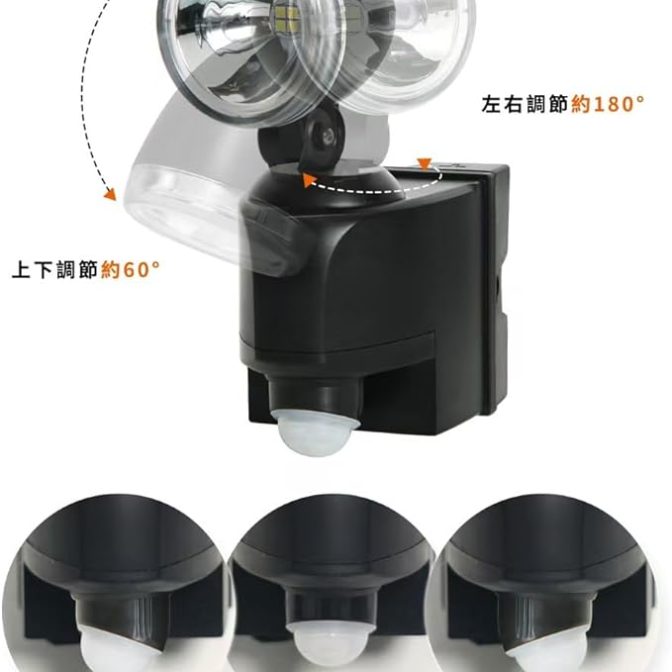 - ★【仕様】センサー: 検知距離:約6m,検知角度:約90°(高さ2m設置時)、センサー部: 270°左右調節可 ; ライトヘッド: 上下60°/左右180°調節可、LED: 日亜製ホワイト色、点灯モード切替可、赤外線センサー感知10秒点灯/常時点灯 ; 取付け用バンド、固定用ネジ付属・取扱い説明書/保証書付き。