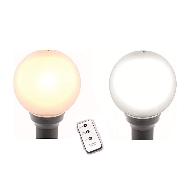 - ★【商品仕様】ボール内蔵:ソーラーパネル、充電池、ホワイト色・電球色LED、明るさ:30ルーメン。・本体サイズ: ボール部 直径20×全体高さ80(㎝) 付属品:底座固定用膨張アンカーセット、リモコン、ネジ、取付け用六角ドライバー